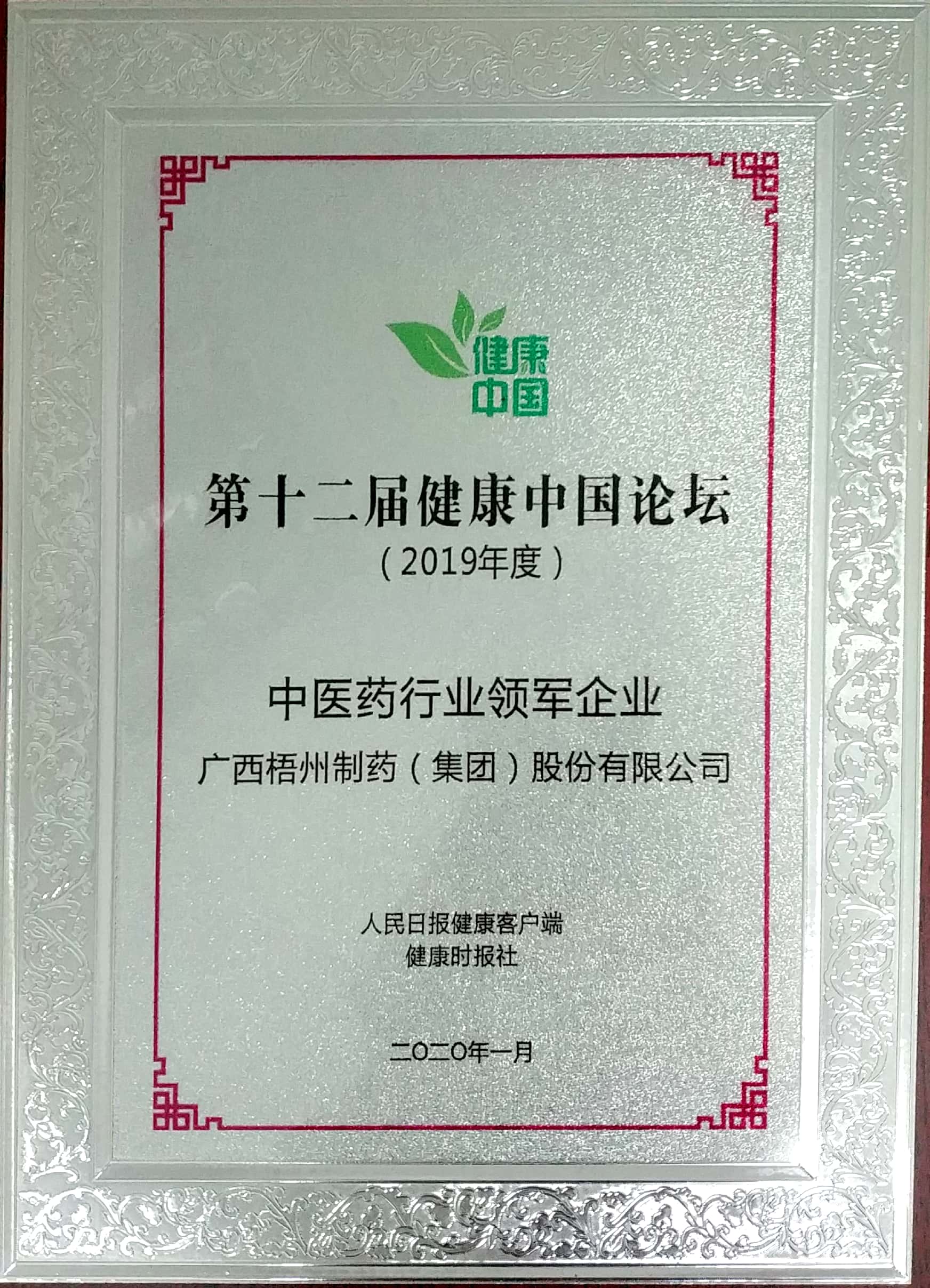2019年度评为中医药行业领军企业