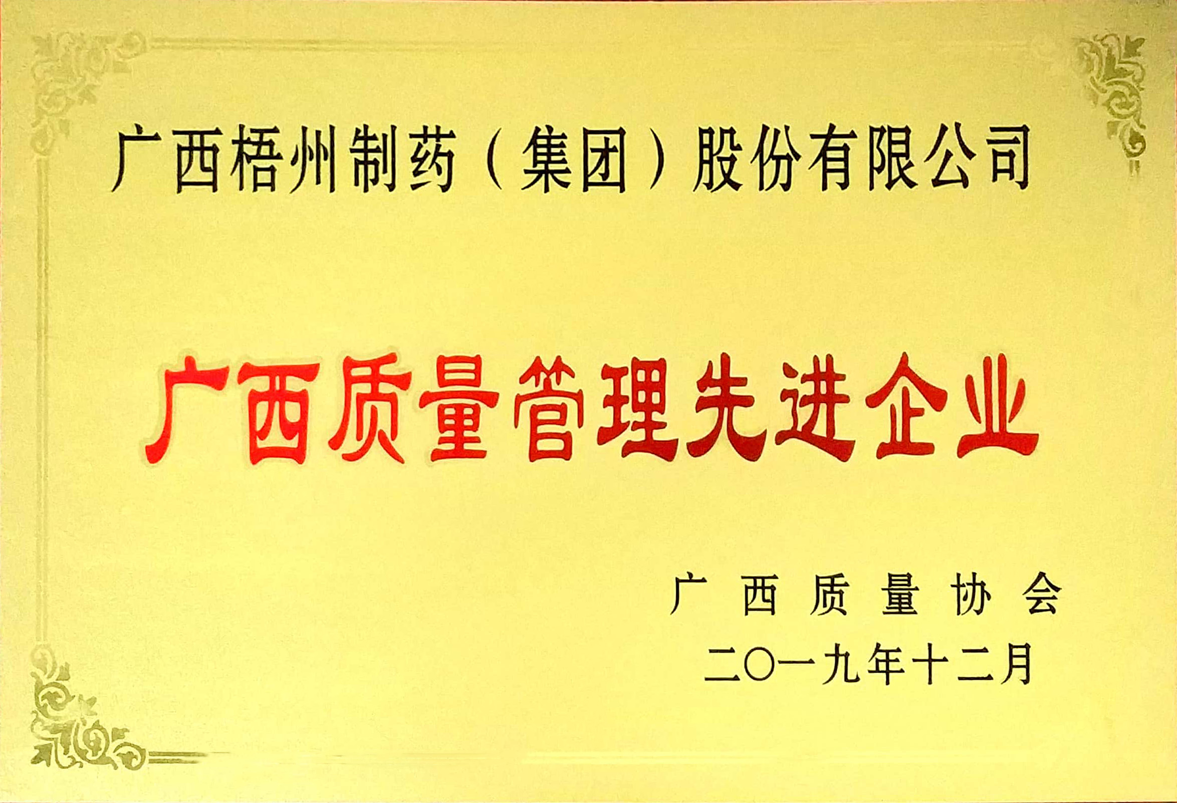 荣获广西质量管理先进企业称号